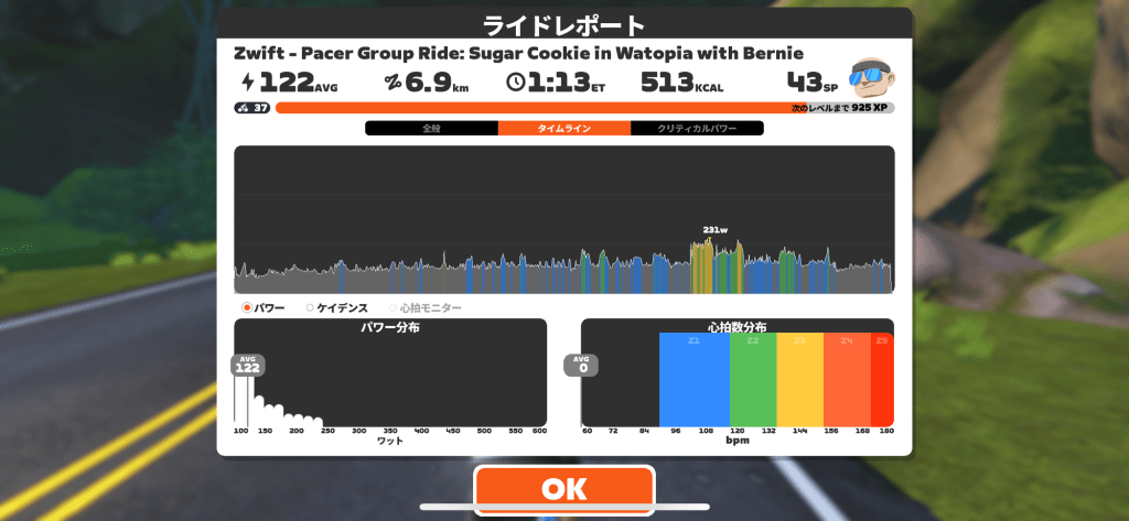 今朝は昨日のレースの疲れもあり、ズイフトDペーサーにて1時間15分ほどL2で走ることに。